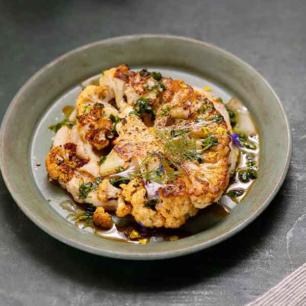 • Porcini,Rubbed Cauliflower Steak with truffle mashed potato and red wine reduction
