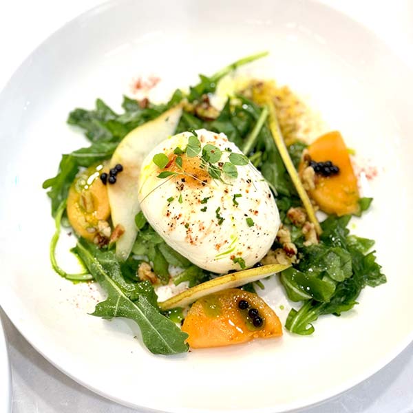 • Baby Gem Caesar with Arugula, Shaved Parmigiano, Chive Oil, Sourdough Crouton