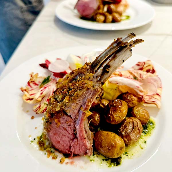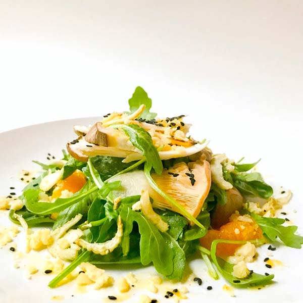 • Shaved Carrot & Fennel Salad with Orange Glaze, Goat Cheese, and Hazelnut Crumb