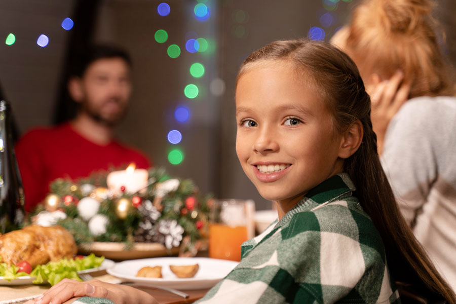 a boy is enjoying a family dinner time