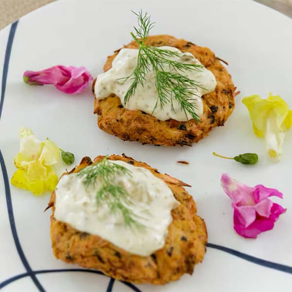 • Main: Butter-baked fish or chicken, carrots & peas (truffle butter optional on side)
